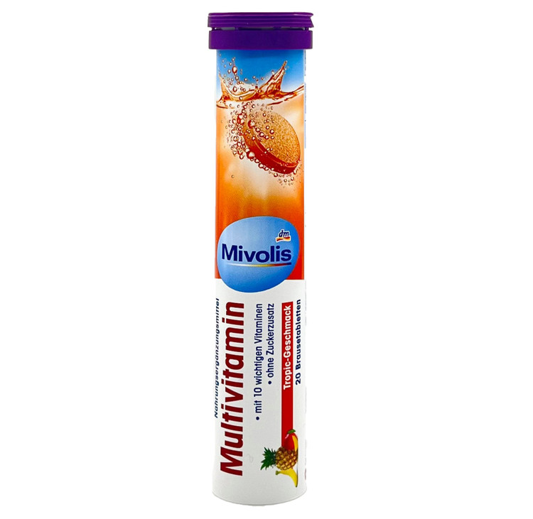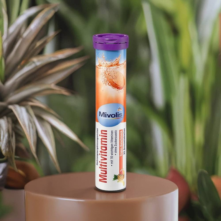 قرص جوشان مولتی ویتامین Mivolis از ده ویتامین مهم تشکیل شده است. با عادات غذایی خاص یا در موقعیت های خاص زندگی، ممکن است نیاز به ویتامین ها افزایش یابد. مکمل غذایی طعمی استوایی دارد. دستور غذا شکر اضافه ندارد (به طور طبیعی حاوی شکر است)