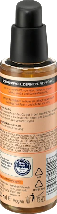 روغن موی فرهای رویایی Balea Professional از فرمولی قدرتمند برای نتیجه قابل توجه و قابل مشاهده تشکیل شده است: فرهای طبیعی و پر جنب و جوش و پر از درخشندگی و جهش. این فرمولاسیون با 5 روغن گیاهی ارزشمند کار می کند: باباسو، آرگان، نارگیل، جوجوبا و روغن آفتابگردان. روغن مو با این ترکیب، موهای مجعد را تغذیه و مشخص می کند و درخشندگی و لطافت طبیعی را با اثر ضد موخوره می بخشد.