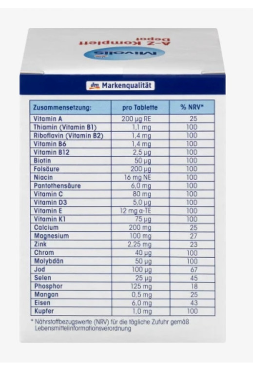 Mivolis A-Z Komplett Depot, Tabletten, 100 St., 138 g