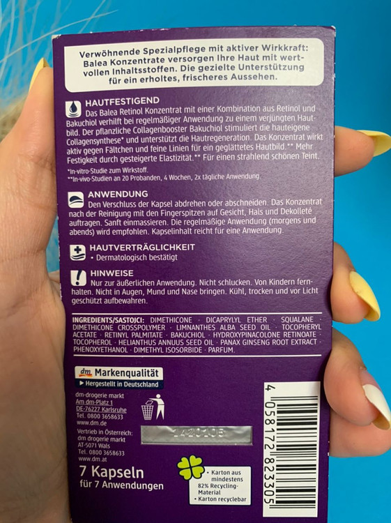 کنسانتره رتینول از Balea می تواند به جوانسازی پوست کمک کند. به لطف فرمول موثر با رتینول و باکوچیول تقویت کننده کلاژن گیاهی، بازسازی پوست بهبود می یابد و از سنتز کلاژن خود پوست پشتیبانی می شود. علاوه بر این، خطوط ظریف و چین و چروک های کوچک را می توان کاهش داد. این سرم استحکام و خاصیت ارتجاعی پوست را افزایش می دهد و با استفاده منظم پوستی صاف را تضمین می کند.