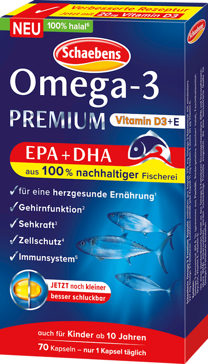کپسولهای روغن ماهی پریمیوم امگا ۳ Schaebens منبع غلیظی از اسیدهای چرب امگا ۳ مانند EPA و DHA را ارائه میدهند که میتوانند به عملکرد طبیعی قلب کمک کنند*. این کپسولها به راحتی در برنامه روزانه شما جای میگیرند و مکملی ایدهآل برای یک رژیم غذایی متعادل هستند. با ۷۰ کپسول در هر بسته، این کپسولها یک راه حل مناسب برای دریافت روزانه اسیدهای چرب ضروری شما ارائه میدهند.