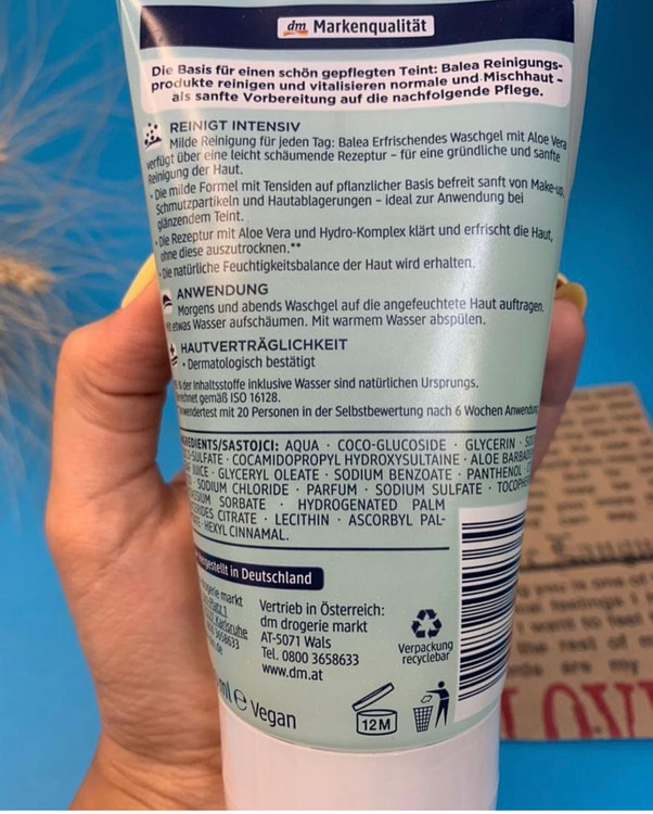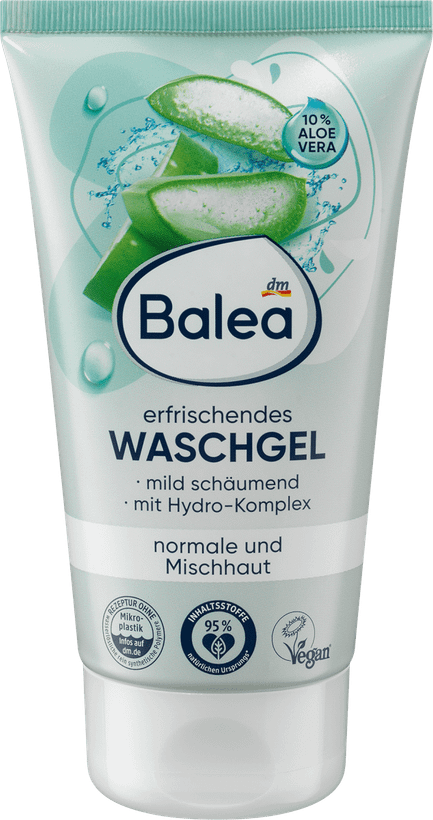 ژل شستشوی با طراوت Balea پوست معمولی و مختلط را به عنوان یک آماده سازی ملایم برای مراقبت های بعدی تمیز و احیا می کند. ژل شستشوی طراوت با آلوئه ورا دارای فرمول کمی کف کننده است - برای پاکسازی کامل و نرم پوست. فرمول ملایم با سورفکتانتهای گیاهی به آرامی آرایش، ذرات کثیفی و رسوبات پوست را پاک میکند - ایدهآل برای استفاده روی پوست براق. فرمول حاوی آلوئه ورا و کمپلکس هیدرولیکی پوست را بدون خشکی شفاف و شاداب می کند. دستور العمل بدون میکروپلاستیک و پلیمرهای محلول در آب