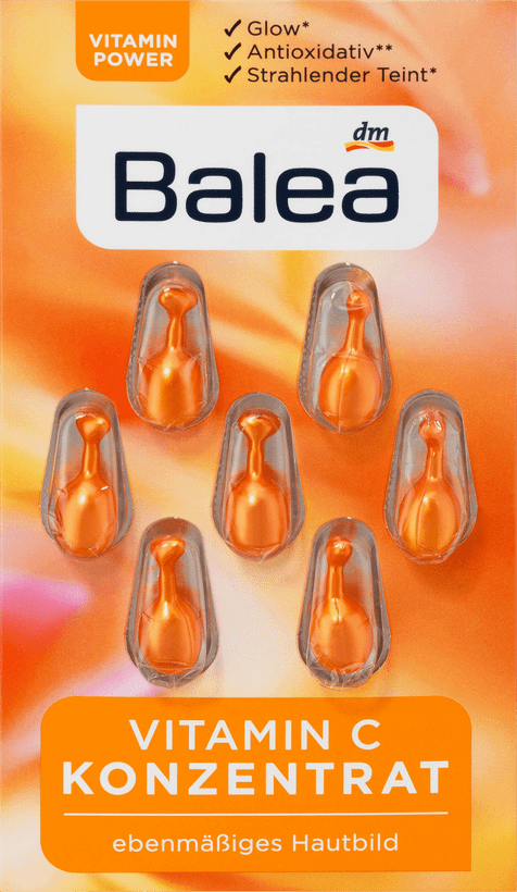 کنسانتره ویتامین C Balea یک محصول مراقبت ویژه با خواص فعال است و مواد با ارزشی را برای پوست فراهم می کند. کنسانتره مراقبتی احیا کننده با کوکتل ویتامین C و E یک تقویت کننده واقعی زیبایی است. فرمول درخشندگی با روغن پرتقال رطوبت* و اثر آنتی اکسیدانی اثبات شده** را فراهم می کند. ماده فعال Collageneer® می تواند تولید کلاژن خود پوست را در صورت استفاده منظم تحریک کند. بافت نرم و مخملی و رایحه نشاط آور مرکبات را تقویت می کند.