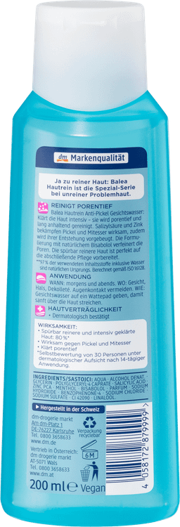 تونر صورت پوست Balea پاکسازی شدید صورت را تضمین می کند و احساس دلپذیری به پوست می دهد. فرمول حاوی اسید سالیسیلیک و روی با جوش ها و جوش های سرسیاه مبارزه می کند و از ایجاد آنها جلوگیری می کند. شفاف شدن عمیق منافذ پوست برای 80٪ از کاربران پوست به طور قابل توجهی تمیزتر و شفاف تر می شود*. دستور العمل بدون میکروپلاستیک و پلیمرهای کاملاً مصنوعی محلول در آب.