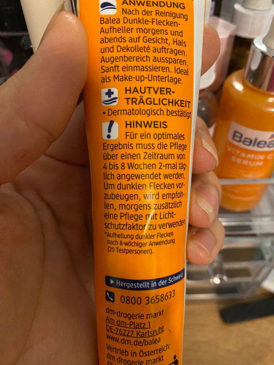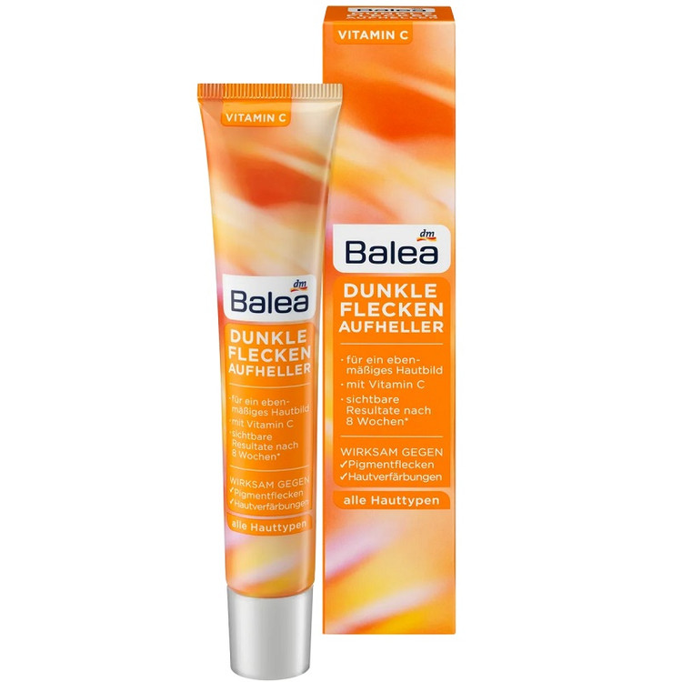 روشن کننده لکه های تیره با ویتامین C Balea در برابر لکه های رنگدانه و تغییر رنگ پوست عمل می کند. ترکیبات فعال ویتامین C و نیاسینامید اثر روشن کنندگی دارند و بنابراین می توانند لکه های رنگدانه و تغییر رنگ پوست را کاهش دهند. ویتامین های E و C دارای اثر آنتی اکسیدانی هستند و می توانند از پوست شما در برابر رادیکال های آزاد و تاثیرات محیطی محافظت کنند. نیاسینامیدها همچنین می توانند رنگدانه ها را کاهش دهند و باعث می شوند لکه های پیری کوچکتر و کمتر دیده شوند. همچنین میتوان عیوب صورت را بهطور مداوم از بین برد و بینظمیهای رنگ پوست را محو کرد*.